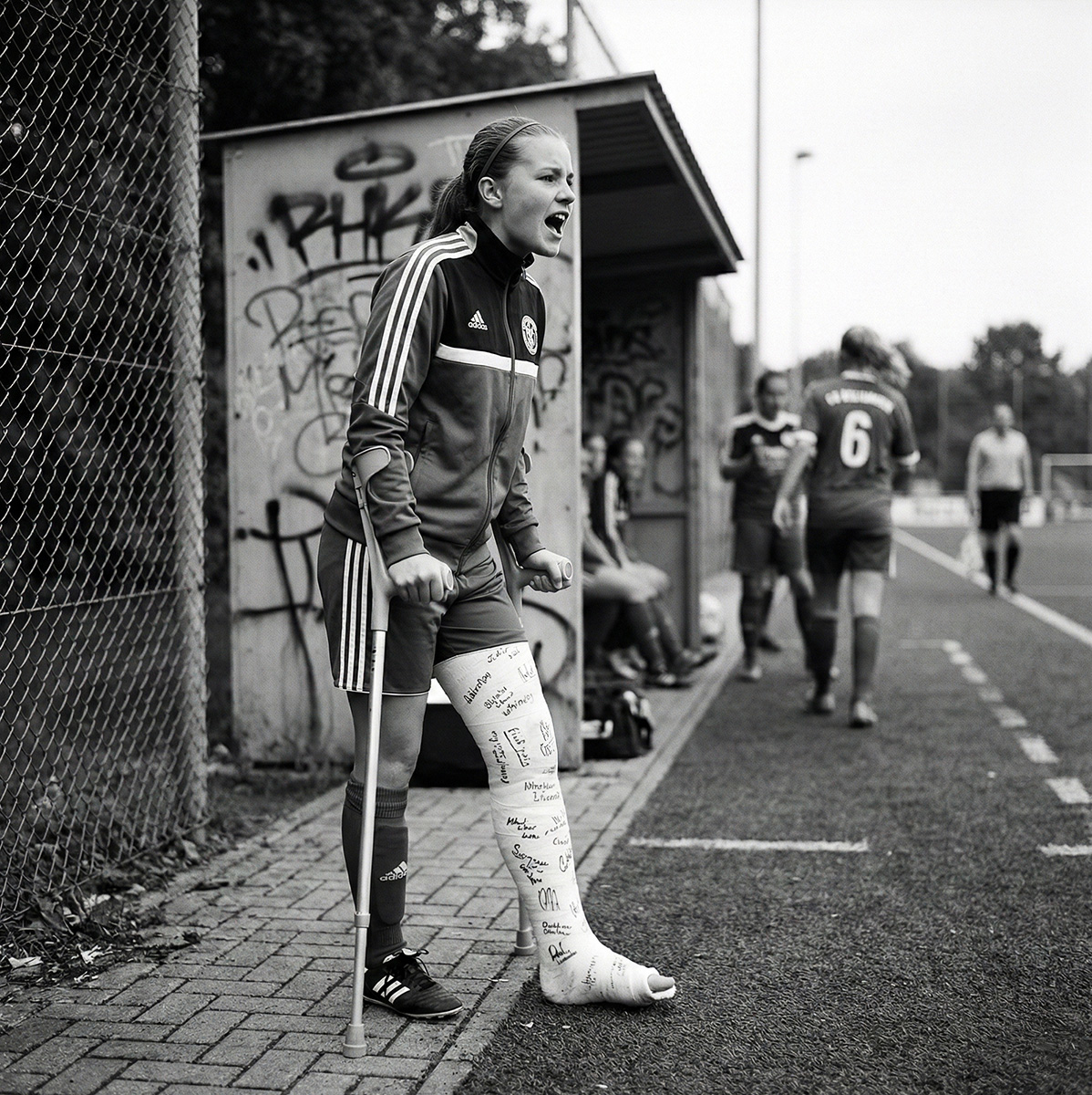 Die Grundlage meiner Serien ist, dass es immer echte Menschen mit ihren echten Geschichten oder Vorstellungen sind. Es macht sehr wohl einen Unterschied, ob wir die Geschichte eines Menschen mit einem Gips erzählen, den sie sich selbst ausgewählt und zu dem wir ein passendes Szenario entworfen haben oder ob irgendwas Beliebiges in den Raum gepromptet wurde, nur um ein gefälliges Bild zu erzeugen.