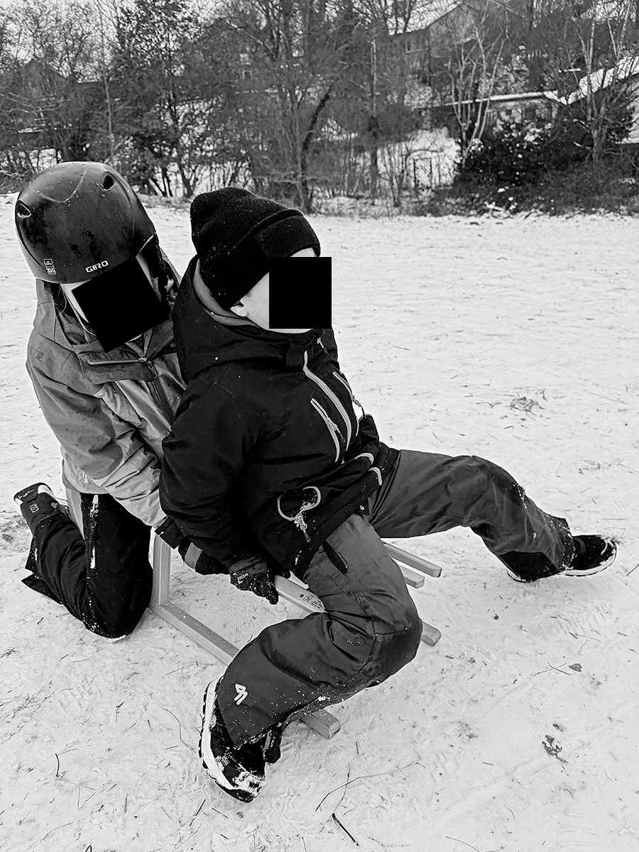 Ein einfacher Schnappschuss um die Eltern des Freundes an der Rodelpartie teilhaben zu lassen.