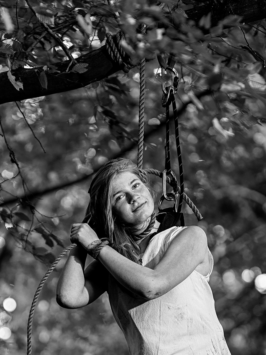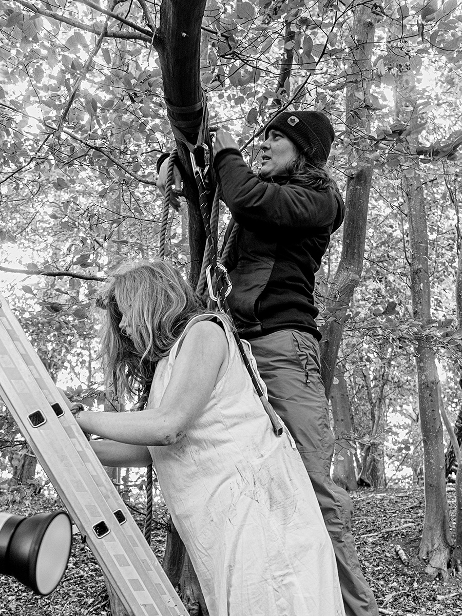Trotzdem ist es mir im Buch wichtig, ein ausführliches Making-of beizufügen. Nicht nur, um zu zeigen, wie viel Sorgfalt und Aufwand nötig war, um Ylva sicher an den Baum zu bringen, sondern auch, um ganz deutlich zu machen: Diese Szene war vollständig inszeniert. Sie war Teil einer fiktionalen Erzählung – und die junge Darstellerin hatte beim Shooting großen Spaß.